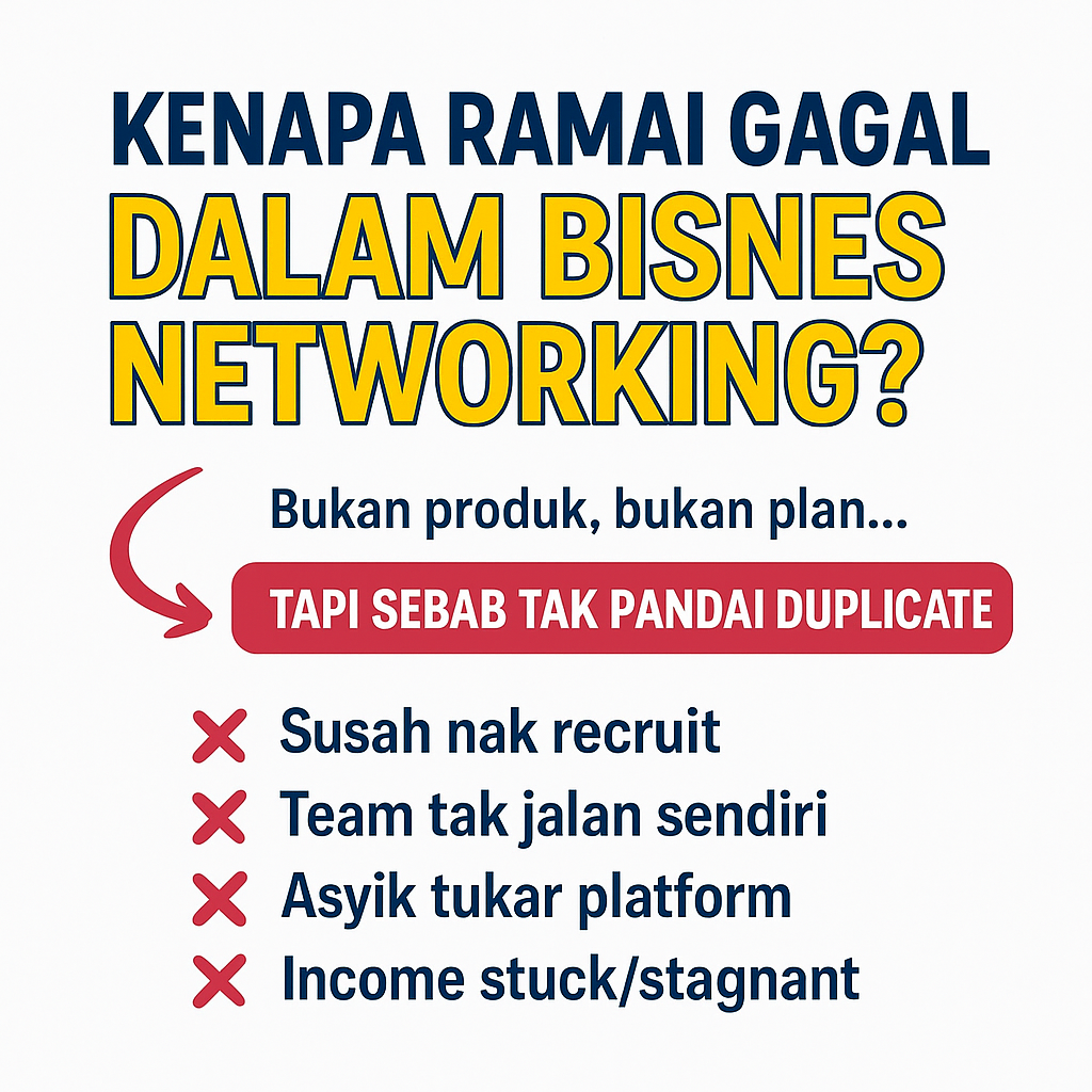 Ramai orang bila dengar tentang bisnes networking, terus rasa excited sebab nampak peluang untuk jana income besar. Ada yang join sebab kawan ajak, ada yang minat produk, ada juga sebab nampak testimoni kejayaan orang lain.